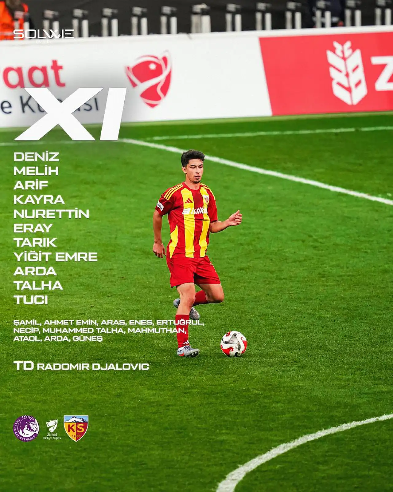 Sarı-kırmızılı ekip gençlerle çıkacağı müsabakada tur arayacak. Bu maçında kadrosunda A takımdan sadece Deniz, Nurettin, Arif, Tuci, Kayra, Mehmet Eray ve Talha Sarıaslan yer aldı. Radomir Djalovic'in kupa maçına çıkardığı 11 ile lige daha fazla önem verdiği yorumları yapıldı. Kayserispor hafta sonu İstanbul'da Eyüpspor ile kritik bir maça çıkacak.