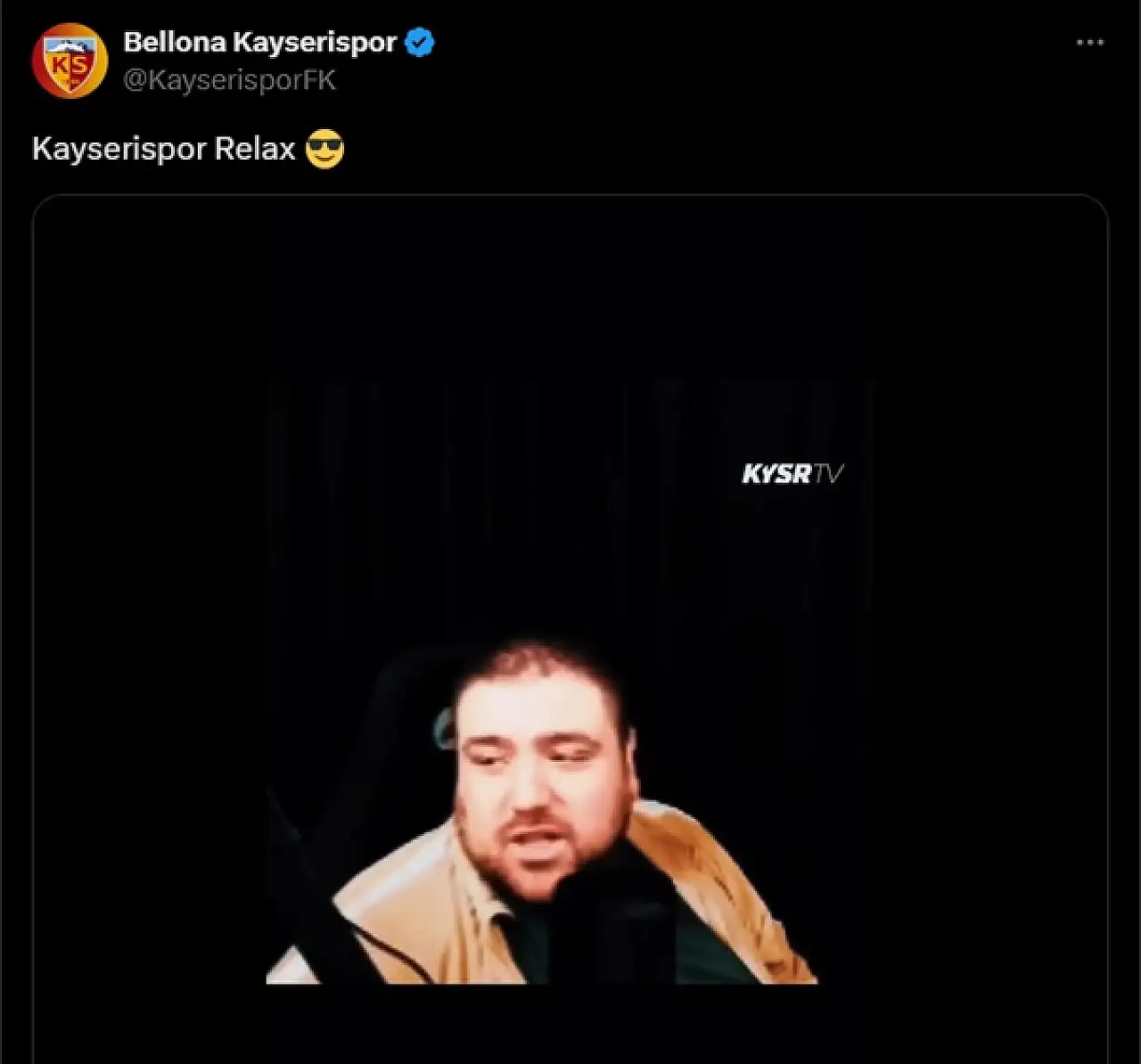 'Kayserispor Relax' sözleriyle paylaşılan videoda yayıncı Kaşıkçı şu ifadeleri kullanıyor; “Kayserisporlu olmak ne keyiflidir lan. Harbiden ya. Her sene... Yok abi bu sene tahtayı falan açamayacaklar. Yine transfer yok. Hay Allah kahretsin. Biz bu hayata çile çekmeye gelmişiz Kayserisporlu olarak… Falan diye takılıyorsun. Transferin son günü başkan açıklama yapıyor sabah 9'da. Tahtayı açtık. Allah! O mutluluğu düşünsene.”
