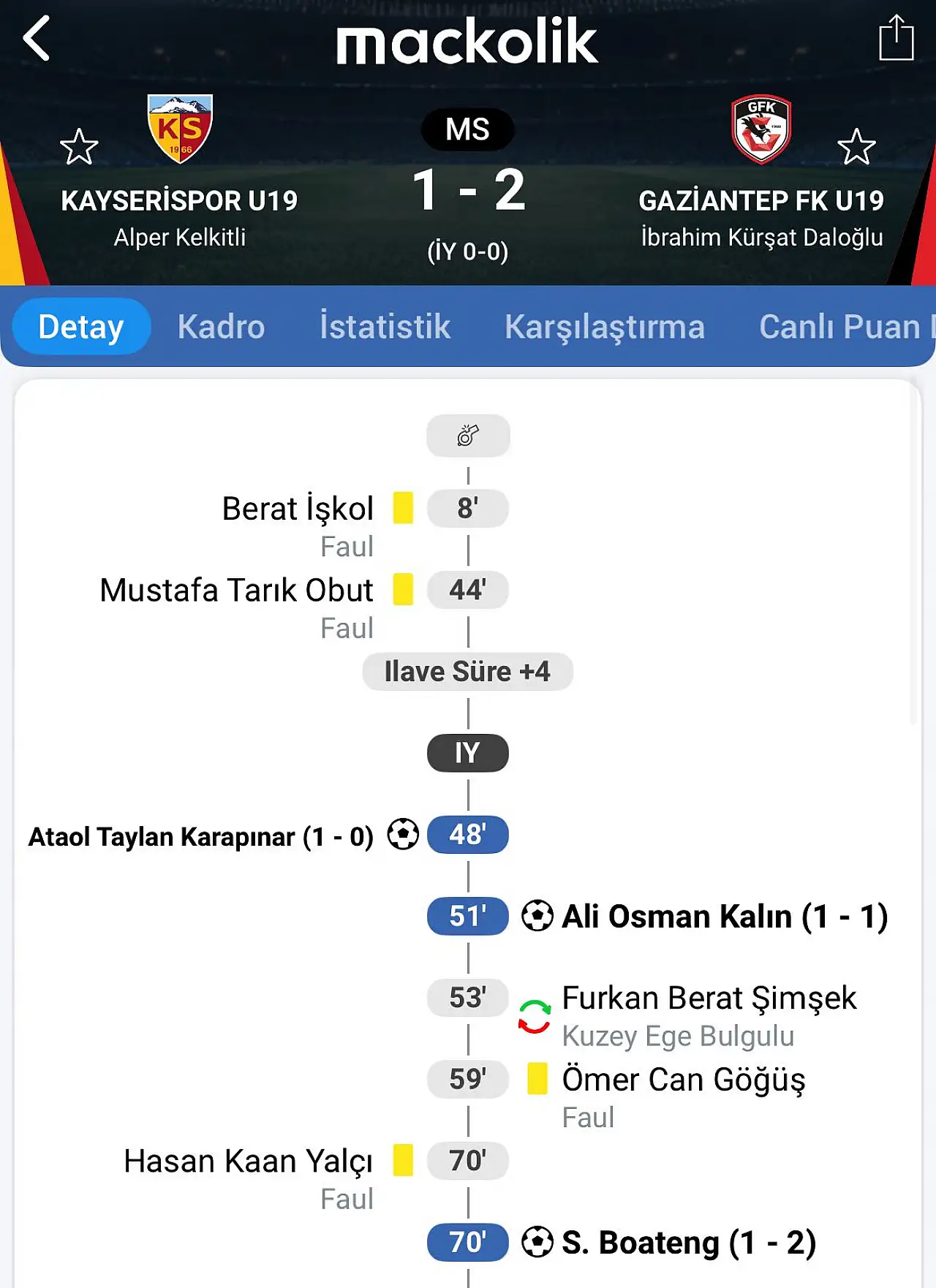 TFF’nin resmi listesindeki karar numaralarına göre Cletus Okyere Boah, Kwaku Boateng, Semih Yıkıcı ve Gaziantep FK A.Ş. için savunma sürelerinin beklenmesine ve tedbirsiz olarak sürecin ilerlemesine hükmedildi.