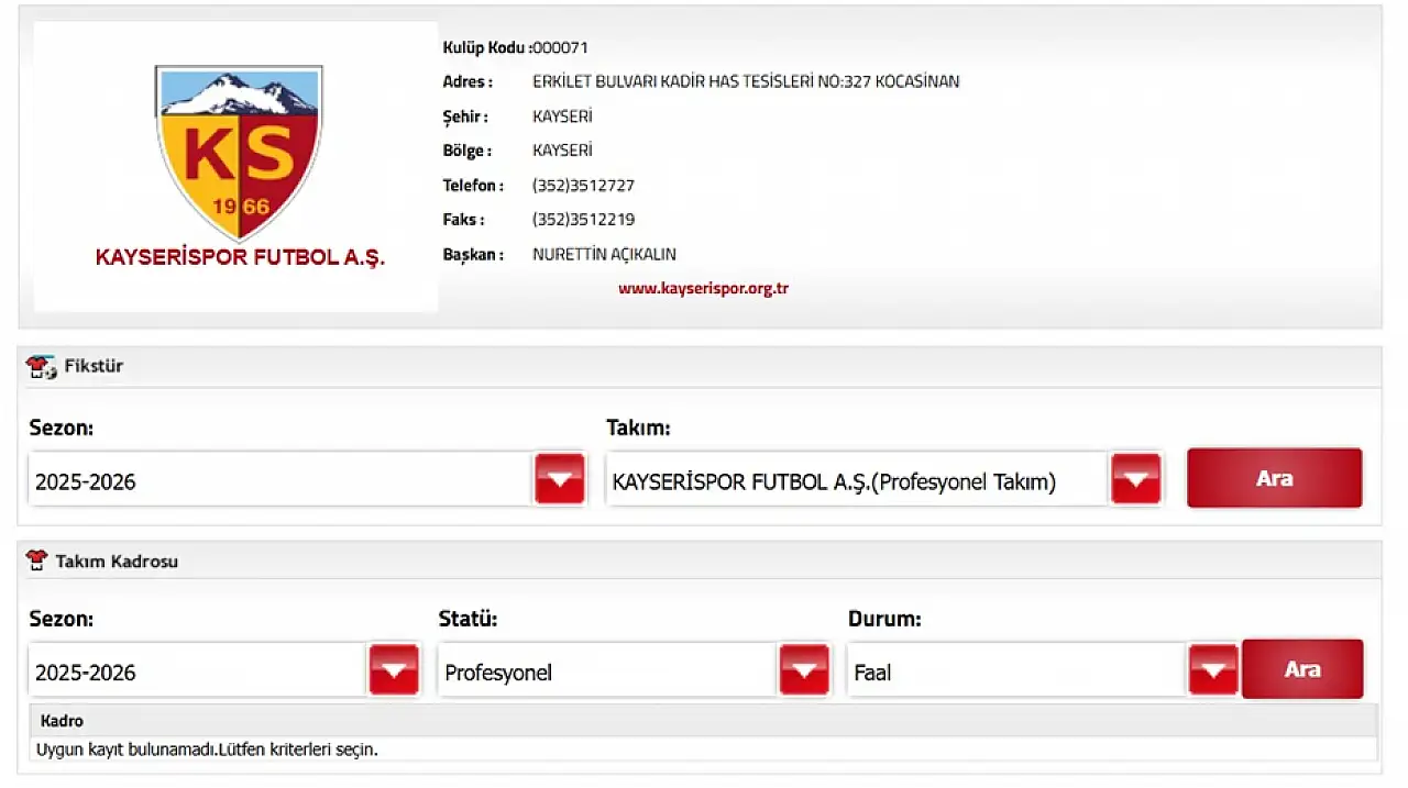Henüz Türkiye Futbol Federasyonu’nun resmi web sitesinde Kayserispor bölümünde lisansı çıkan futbolcu bulunmuyor. Sarı-kırmızılı takım, bu hafta içerisinde geçen sezonki futbolcuların lisans çıkarma işlemlerine başlayacak.