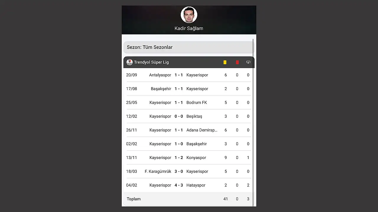 İşte Kadir Sağlam’ın yönettiği Kayserispor maçları;
