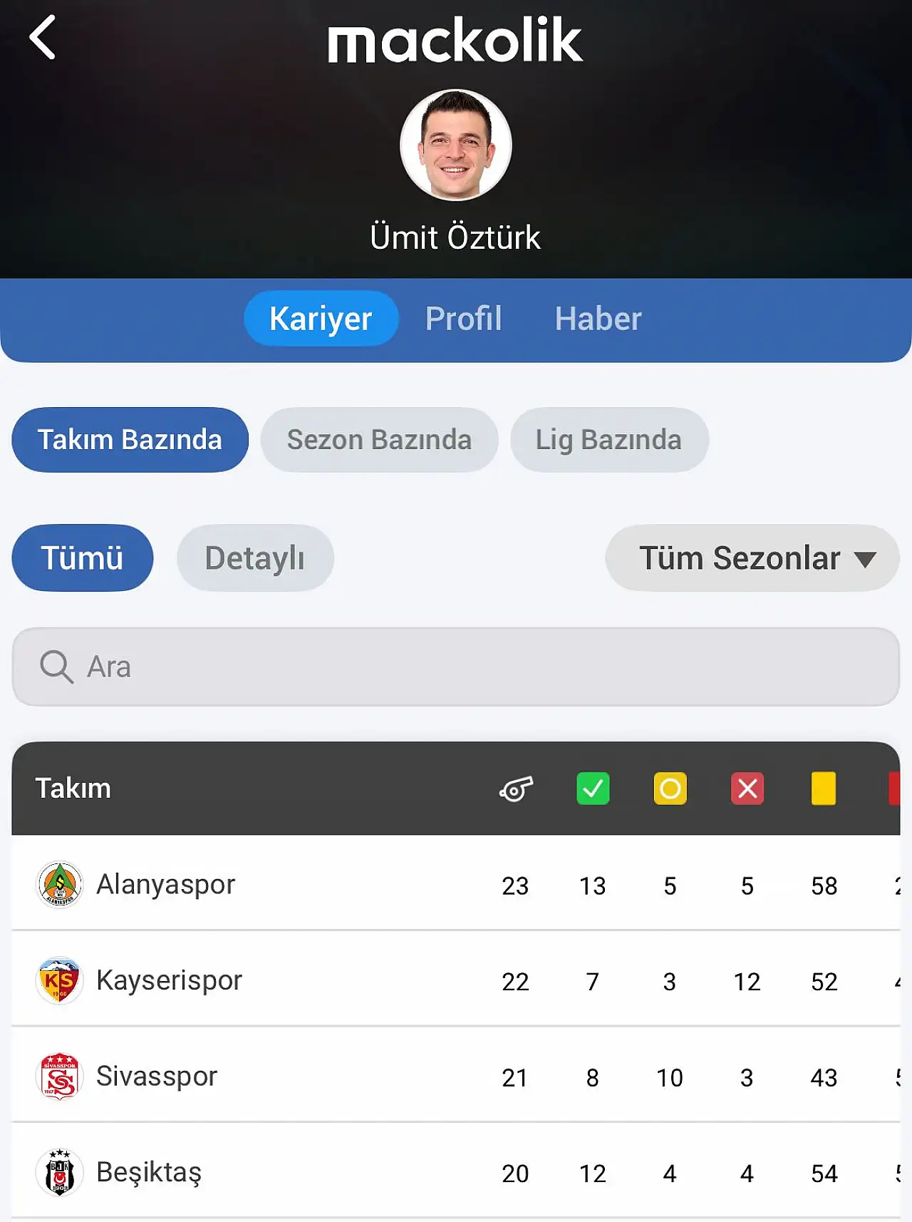 Öztürk’ün en fazla maçını yönettiği takım ise 23 maç ile Alanyaspor oldu. Öztürk, Süper Lig’de Alanyaspor’un 18 maçını yönetirken, diğer kategorilerde ise 5 maçını yönetti.
