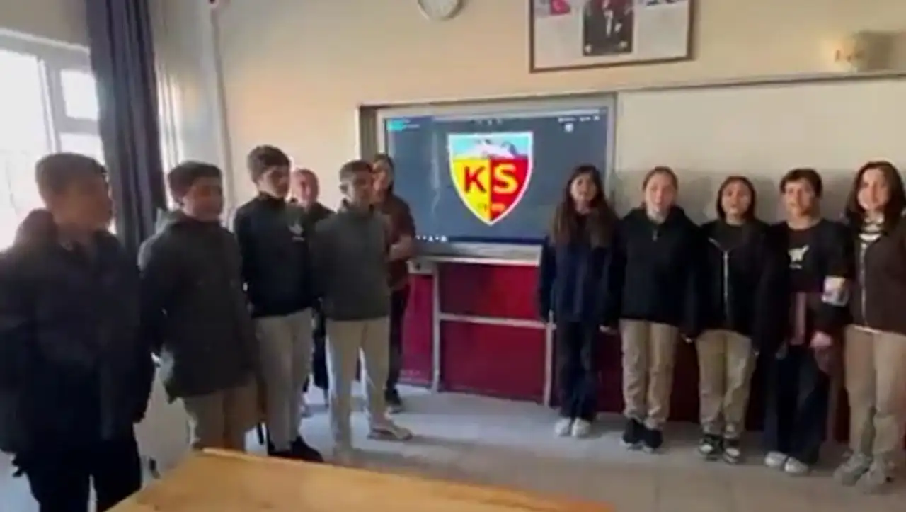 Kayserispor sevdasının yurdun dört bir yanında büyüdüğünü gösteren gelişme Manisa’nın Salihli ilçesinden gelen video ile gündem oldu. Kayserispor taraftarı birkaç öğrenci kameranın karşısına geçerek ‘Sarı-Kırmızı en büyük Kayserispor!’ sloganlarını attı. Öğrencilerin ardından kameralın karşısına çıkan öğretmenleri ise ‘Değerli başkanım sizlere en büyük saygılarımı sunuyorum. Öğrencilerimizin sizden bir isteği var. Umarım sizin bir maçınızı stadyumda hep beraber seyretmek istiyoruz. Bu çağrımıza cevap verirseniz çok teşekkür ederiz. Manisa Salihli’den selamlar’ dedi.