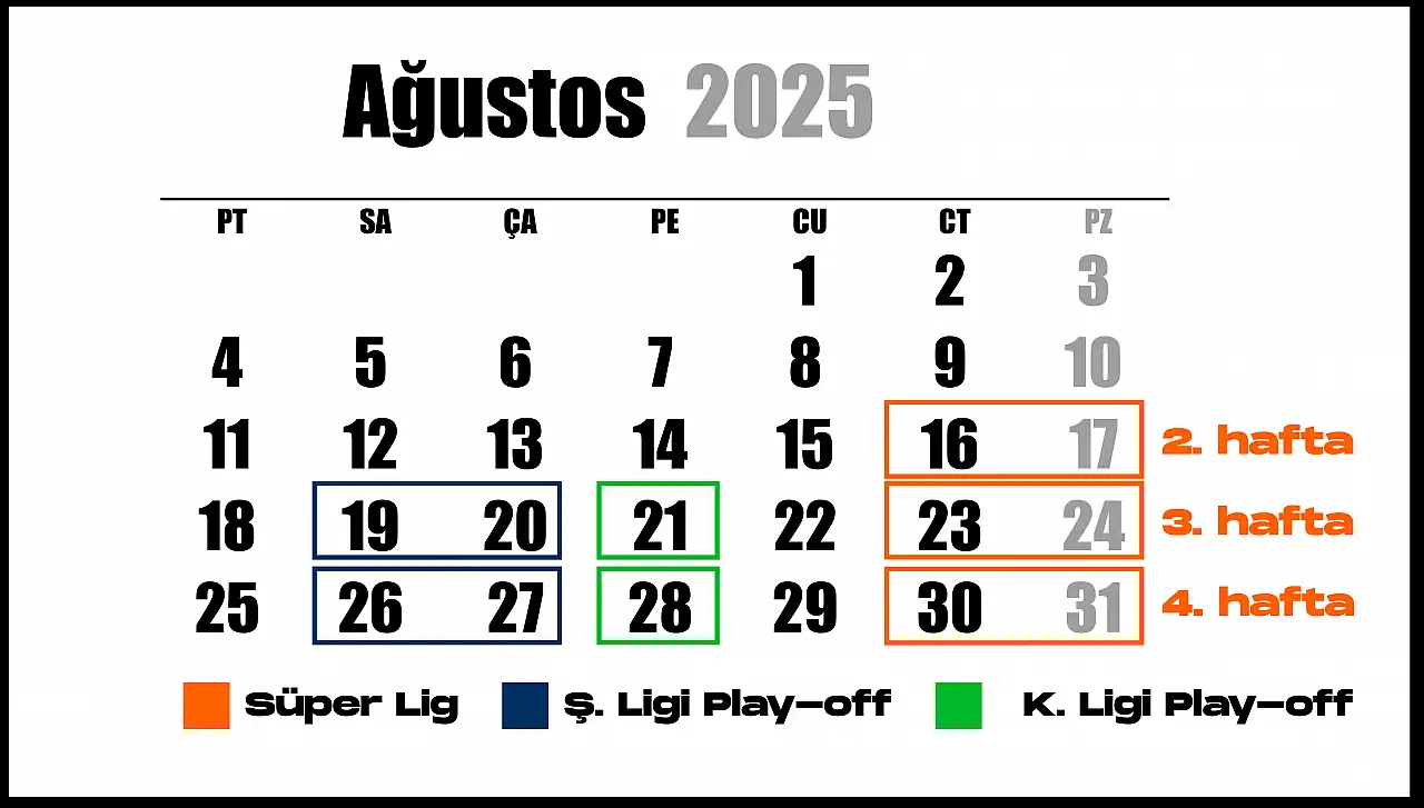 Başakşehir ve Beşiktaş ise hafta içi Konferans Ligi 3. Ön eleme maçlarında rakiplerini elemesi halinde 22 Ağustos ve 29 Ağustos Ağustos tarihlerinde Play-off maçlarına çıkacaklar.