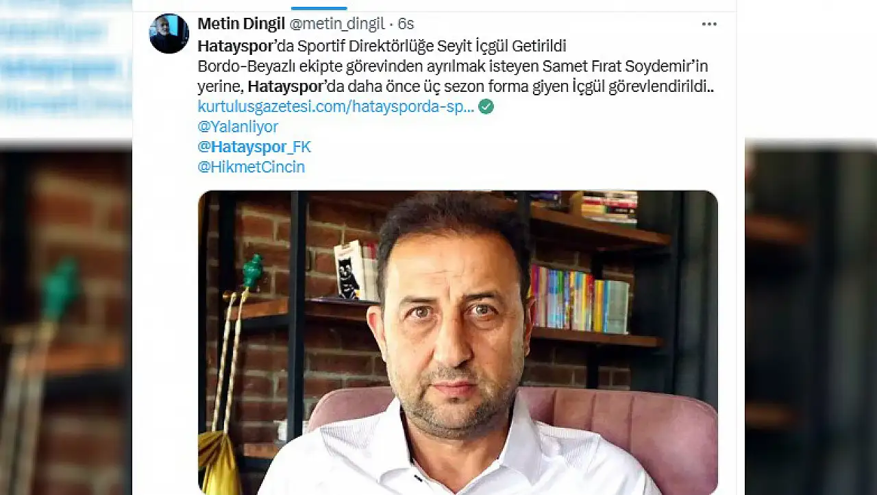İçgül’ün paylaşımını gazeteci Metin Dingil şu ifadelerle duyurdu: “Hatayspor’da Sportif Direktörlüğe Seyit İçgül getirildi. Bordo-Beyazlı ekipte görevinden ayrılmak isteyen Samet Fırat Soydemir’in yerine, Hatayspor’da daha önce üç sezon forma giyen İçgül görevlendirildi.”