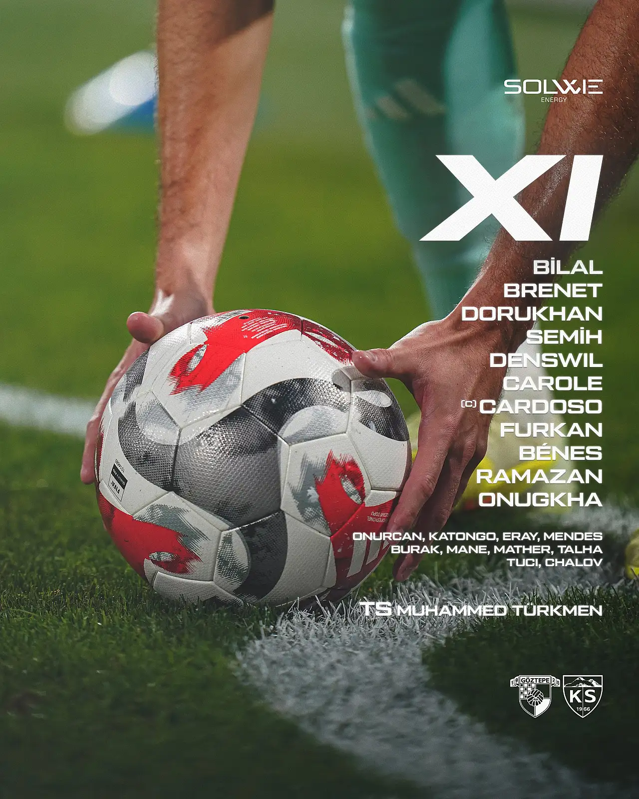 Geçtiğimiz hafta kadroda yer almayan Onughka bugün maça ilk 11'de başlayacak. Yeni transfer Chalov ise maça yedek başlayacak. 4-3-3 dizilişi ile sahaya çıkacak olan Kayserispor'da cezalı olan Görkem ile Bennasser kadroda yer almadı.