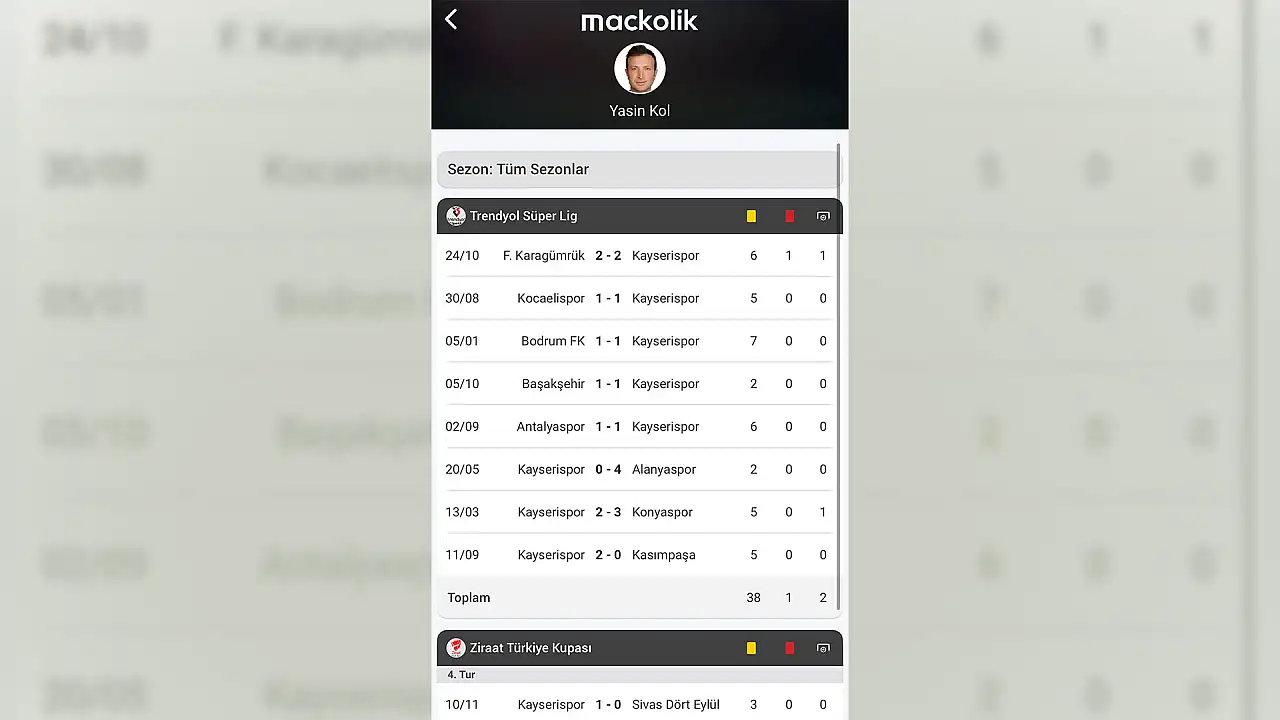 İşte Yasin Kol’un yönettiği Kayserispor maçları…