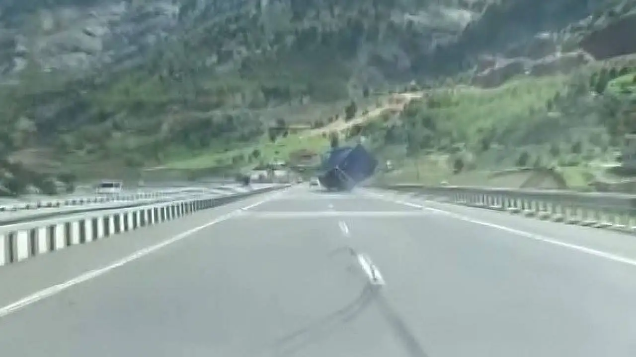 Kaza anı ise arkadan gelen bir araçta bulunan yolcunun cep telefonu kamerasına yansıdı.