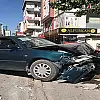 Kayseri'de iki otomobilin çarpışması sonucu meydana gelen kazada duvara çarparak durabilen araçta maddi hasar meydana geldi.