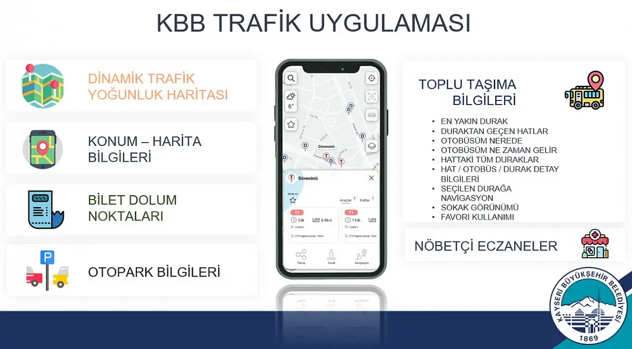 İOS ve Android işletim sistemi uyumlu cihazlarda kullanılabilen ve www.trafik.kayseri.bel.tr web adresi üzerinden de erişilebilen sistem, aynı zamanda belediyenin dijital belediyecilik anlayışının güçlü bir yansıması olarak öne çıkıyor.