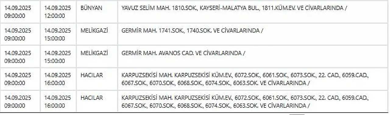 - KCETAŞ paylaştı: Kayseri'de hafta sonu elektrik kesintisi yaşanacak ilçeler! 14 Eylül 2025
