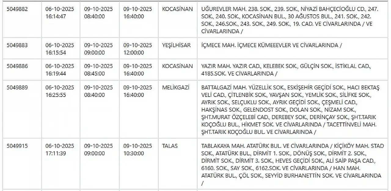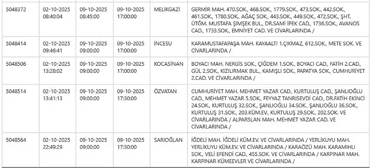 - KCETAŞ'tan elektrik kesintisi uyarısı- O ilçelerde yaşayanlar dikkat! Önleminizi alın! 9 Ekim 2025