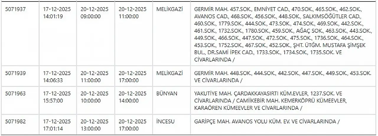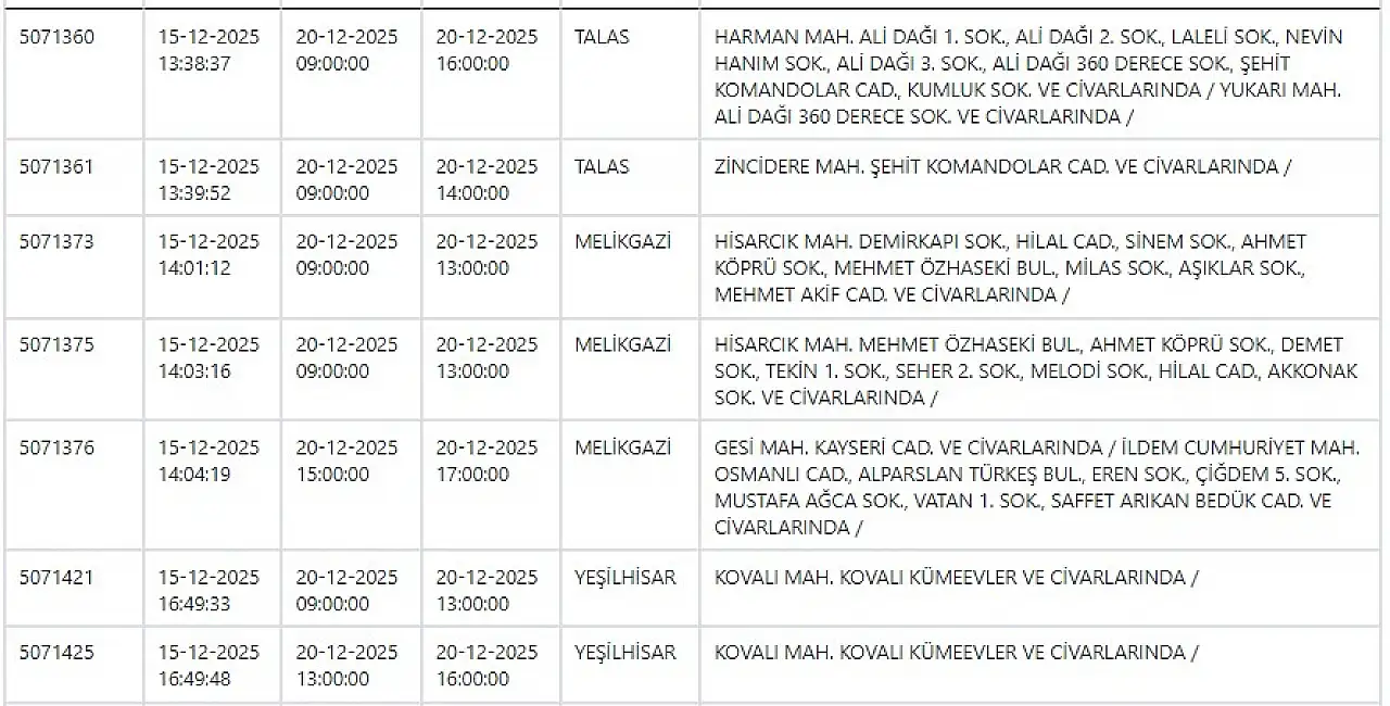 KCETAŞ, Kayseri'de elektrik kesintisi yaşanacak ilçeleri açıkladı. Kayseri'de 20 Aralık 2025 tarihinde elektrikler neden kesildi? Kayseri'de elektrikler ne zaman gelecek? Kayseri'de güncel kesintiler…