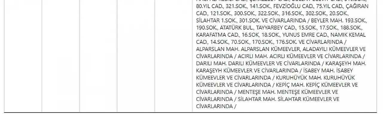 KCETAŞ’tan edinilen bilgilere göre yarın (24 Aralık 2025) aşağıdaki ilçe ve mahallelerde elektrik kesintisi yaşanacak.