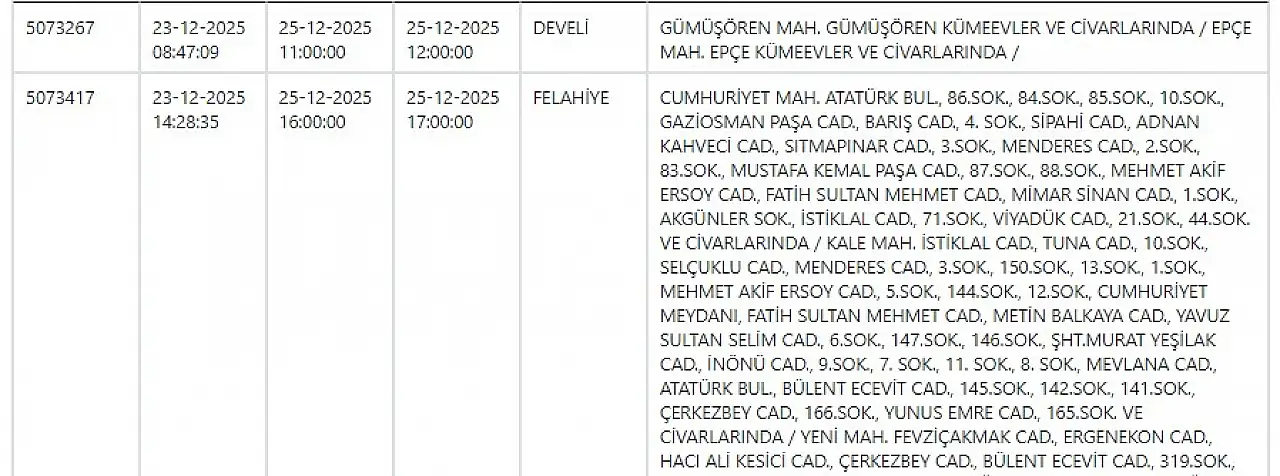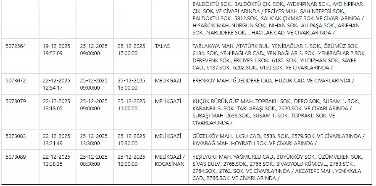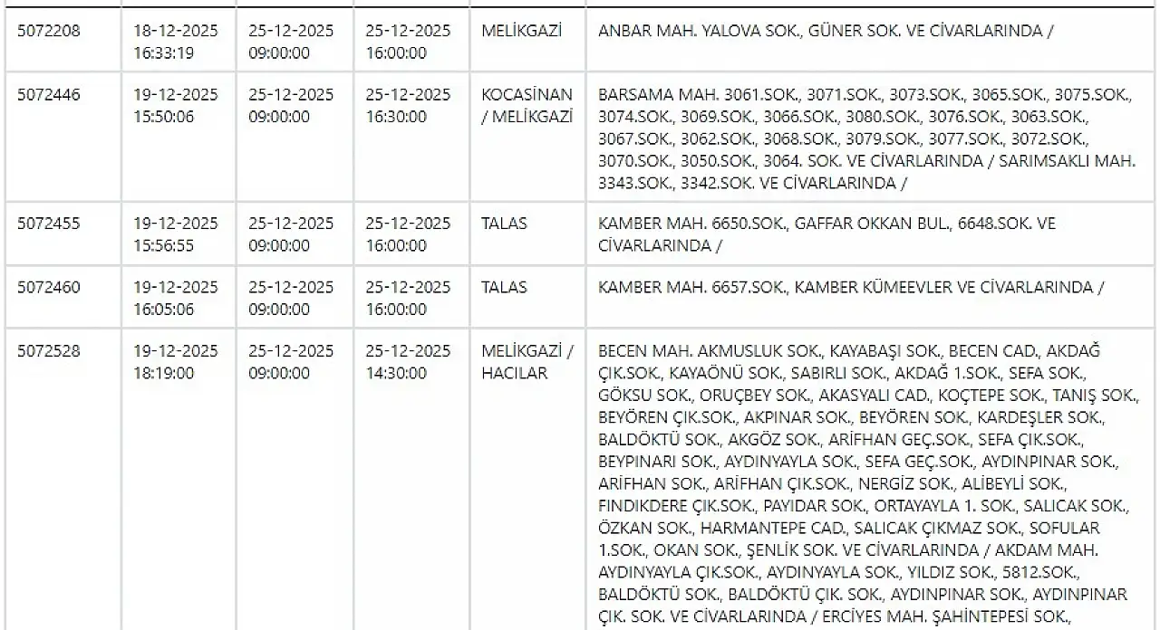 KCETAŞ uyardı - Kayseri'de birçok mahallede elektrik kesilecek… 25 Aralık 2025