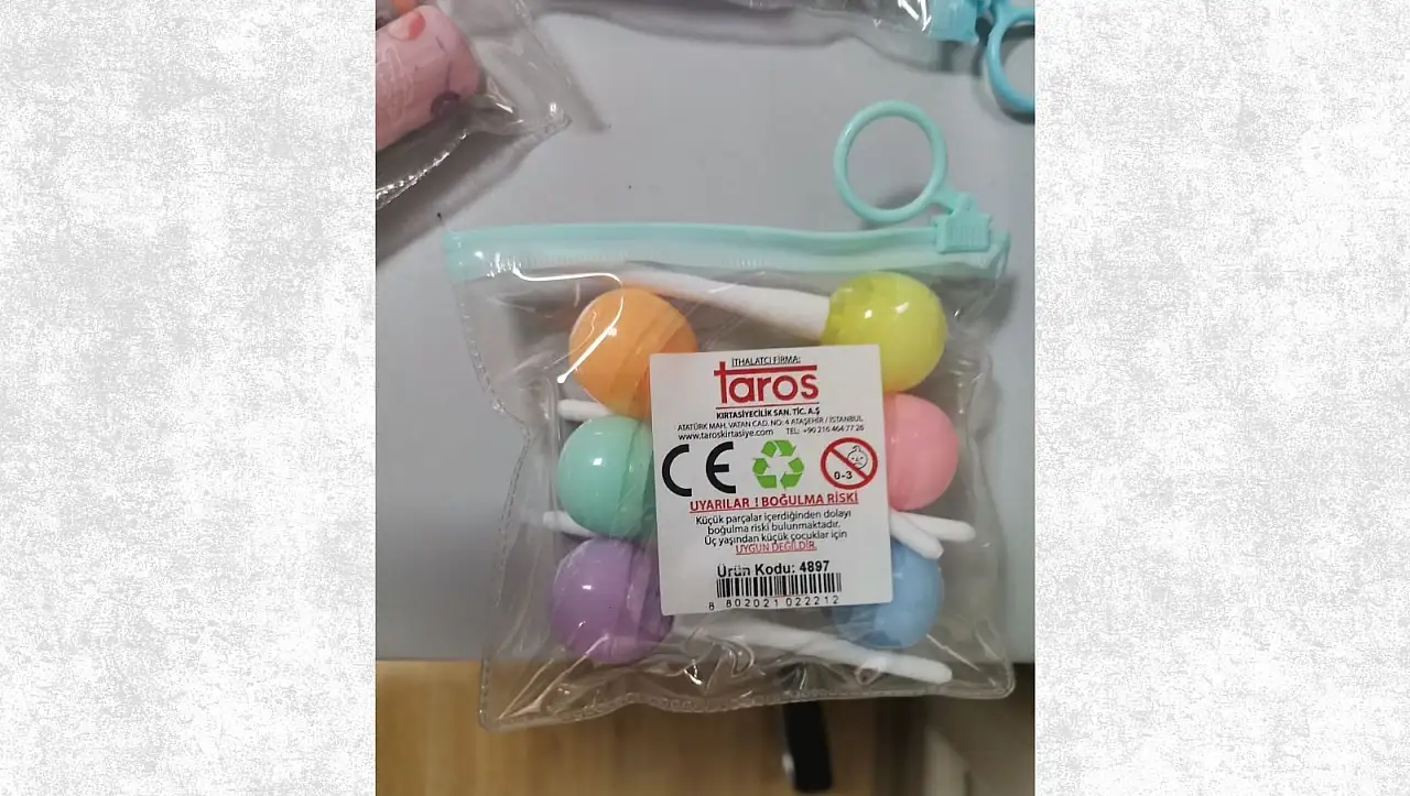 Kırtasiye boya kalemleri ve boya malzemeleri ürün grubundaki Taros marka kalem setine toplatılma ve satış yasağı getirildi. Güvensizlik nedeni 3 yaş altı çocuklarda boğulma riski olduğu tespit edildi.