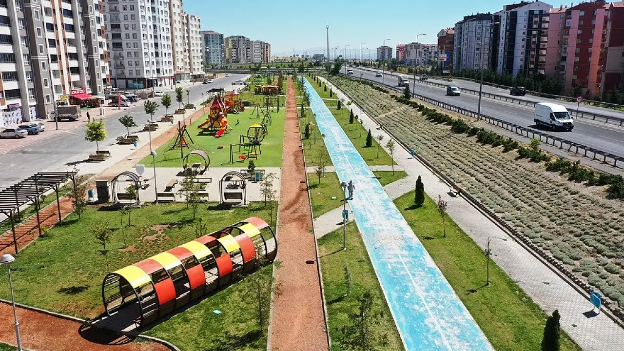 Bundan dolayı her yaptığımız parklarda çocukların toprakla buluştuğu ve vakit geçirdiği mekanlar yapıyoruz. Yürüyüş yollarında ise tartan zeminler yerine uzmanların önerdiği; iklim ve insan sağlığı açısından daha sağlıklı olan kiremit irmiği kullanıyoruz. Mevcut parkların bakım ve onarım çalışmalarının yanı sıra ilçeye yeni ve farklı yeşil alanlar kazandırarak, sosyal alanların sayısını artırıyoruz. Kocasinan’ın her bir mahallesinde park, bahçe ve yeşil alan çalışmalarını bu yıl, artırarak devam ettireceğiz.