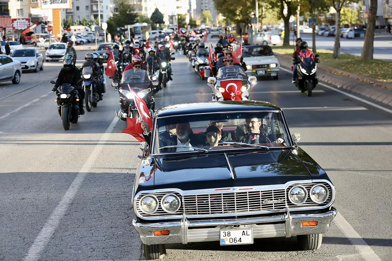 Kocasinan Belediye Başkanı Ahmet Çolakbayrakdar, şehit ve gazi çocuklarıyla birlikte klasik bir araçtan vatandaşları selamladı. Balkonlardan, cadde kenarlarından el sallayan Kayserililer, korteje büyük ilgi gösterdi.