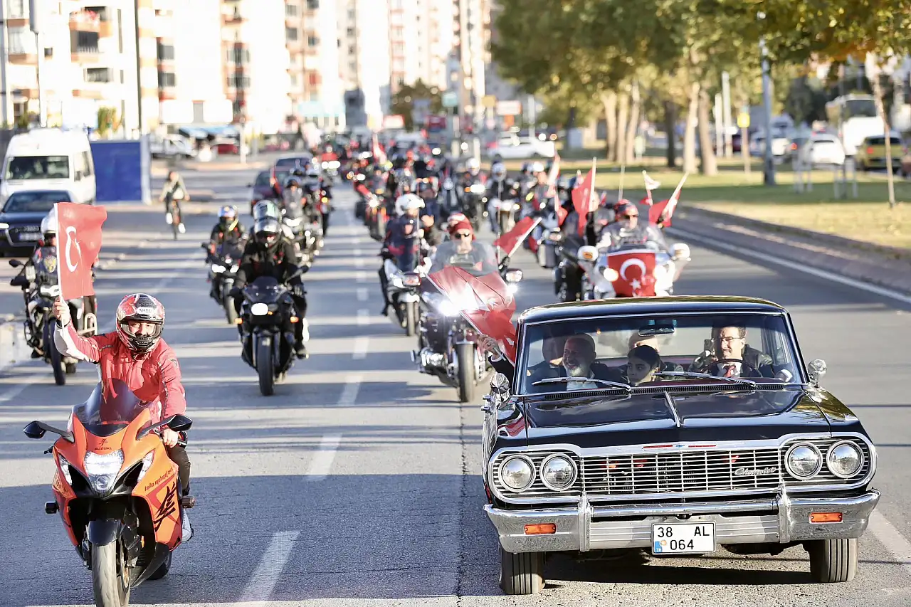Kocasinan Belediyesi, Cumhuriyet’in 102. yıl dönümünü unutulmaz bir etkinlikle kutladı. ‘‘Ay Yıldız Turu’‘ adıyla düzenlenen kortejde vosvoslar, TOGG’lar, klasik araçlar ve motosikletler Kayseri sokaklarında bayraklarla donatılmış bir coşku oluşturdu.