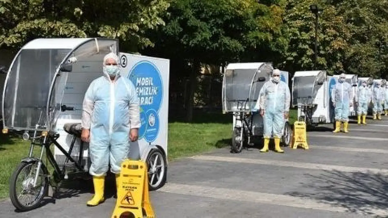 Kocasinan Belediyesi, daha temiz bir Kocasinan için doğa dostu sıfır karbon emisyonlu elektrikli mobil temizlik aracı ile özellikle lavabolarda dezenfekte ve hijyen temizliği gerçekleştiriyor.