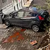 Kontrolden çıkan araç apartman bahçesine uçtu