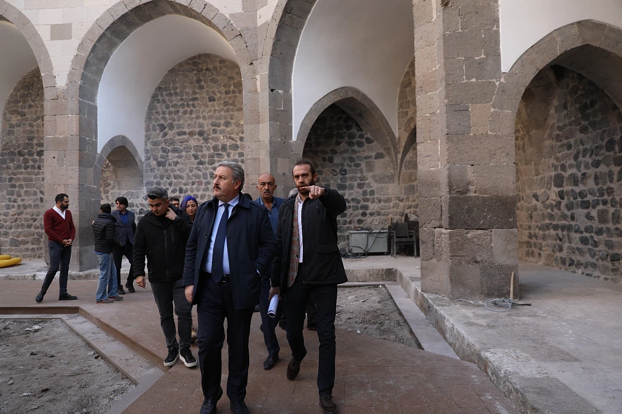 Gültepe Mahallesi’nde bulunan Köşk Medrese’yi yeniden hayata kazandırmak için restorasyon çalışmalarının hızla tamamlandığını söyleyen Melikgazi Belediye Başkanı Mustafa Palancıoğlu, Medrese içerisinde 4 oda ile Suli Paşa, oğlu ve torununun defnedildiği türbenin de mevcut olduğunu söyledi.
