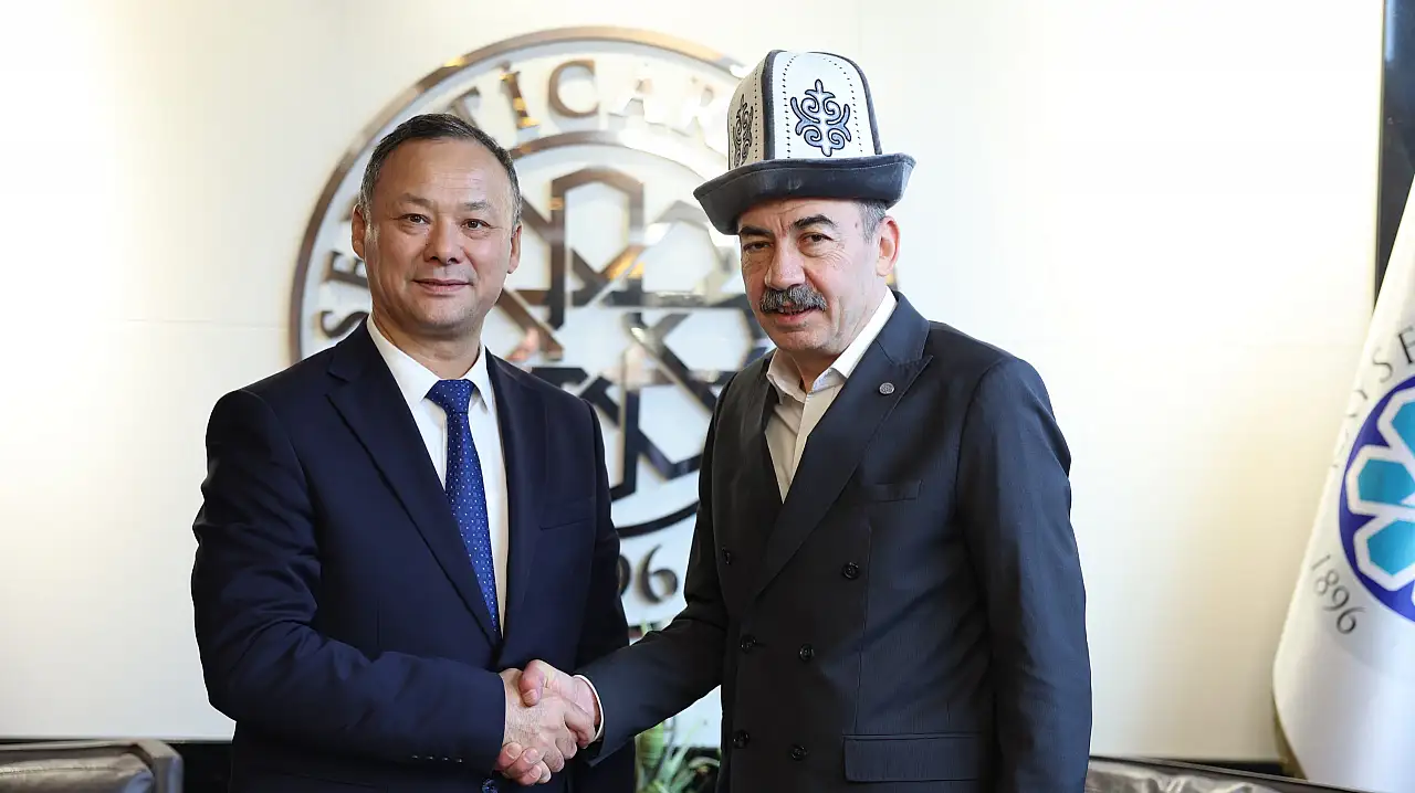 Başkan Gülsoy’un bir diğer ziyaretçisi, Kırgızistan’ın Ankara Büyükelçisi Ruslan Kazakbaev oldu. Ziyarette kardeş ülke Kırgızistan’la olan köklü bağlara vurgu yapan Başkan Gülsoy, ‘Dinimiz, dilimiz, kültürümüz ortak. Kardeşliğimizi daha ileriye taşımak istiyorsak, bu samimi ilişkileri ekonomik alana da yansıtmak durumundayız’ dedi.