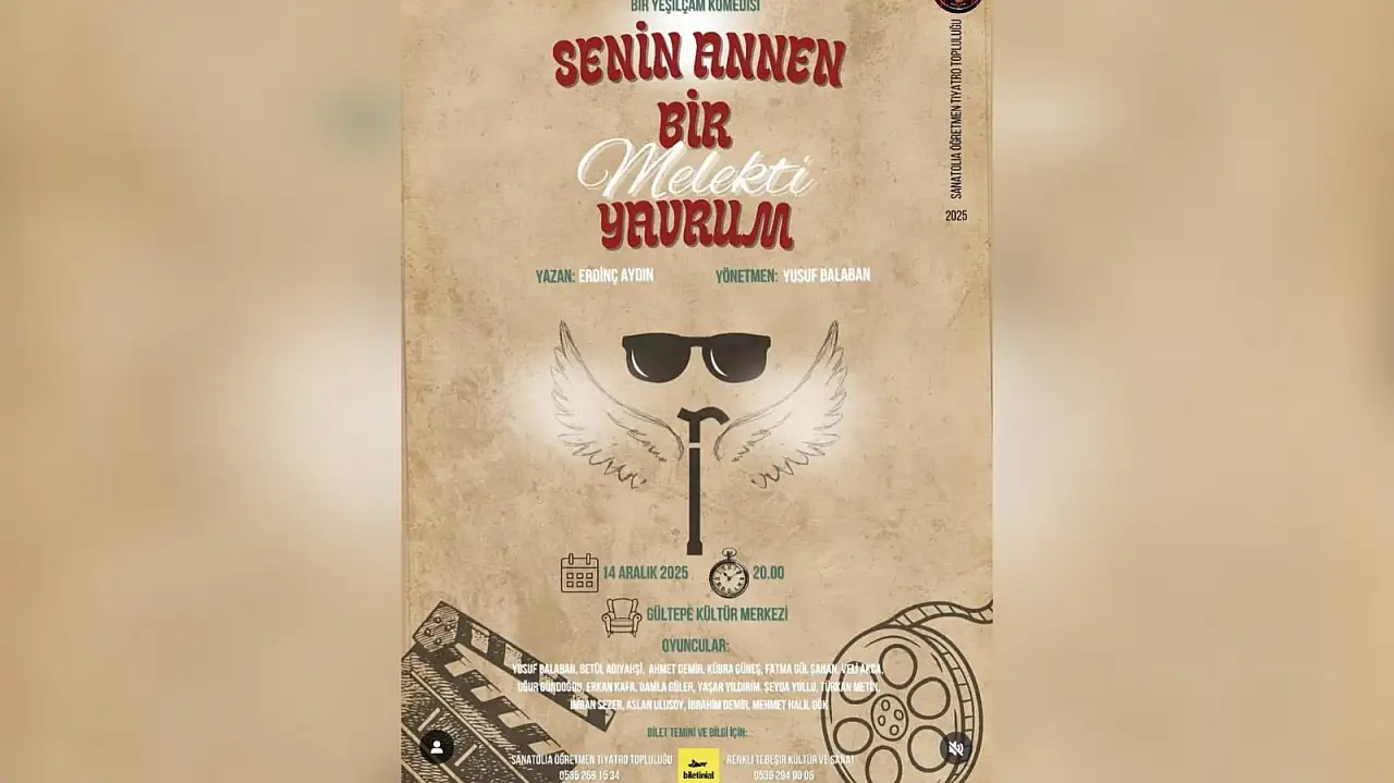 Kayseri’de sahne sanatları Aralık ayına iddialı bir yapımla giriyor. Yeşilçam esintili komedi oyunu ‘‘Senin Annen Bir Melekti Yavrum’‘, Leyla ile Mecnun efsanesini alışılmış romantik bakış açısından çıkarıp alaycı bir yorumla yeniden ele alıyor. Yönetmenliğini Yusuf Balaban, metin yazarlığını ise Erdinç Aydın üstleniyor.