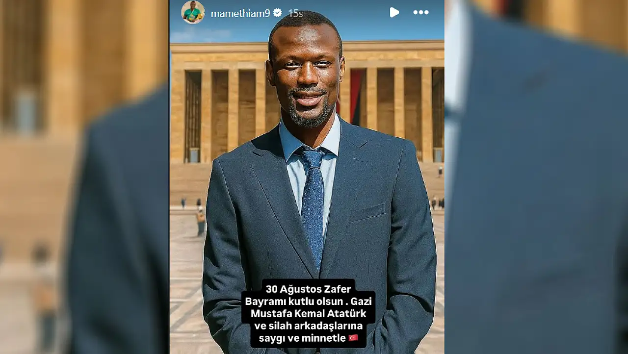 Kasımpaşa, Fenerbahçe, Kayserispor, Pendikspor ve son olarak da Eyüpspor’da forma giyen Thiam, arkasında Anıtkabir’in bulunduğu bir fotoğrafını paylaştı. Paylaşımda ise, “30 Ağustos Zafer Bayramı kutlu olsun. Gazi Mustafa Kemal Atatürk ve silah arkadaşlarına saygı ve minnetle” ifadelerini kullandı.