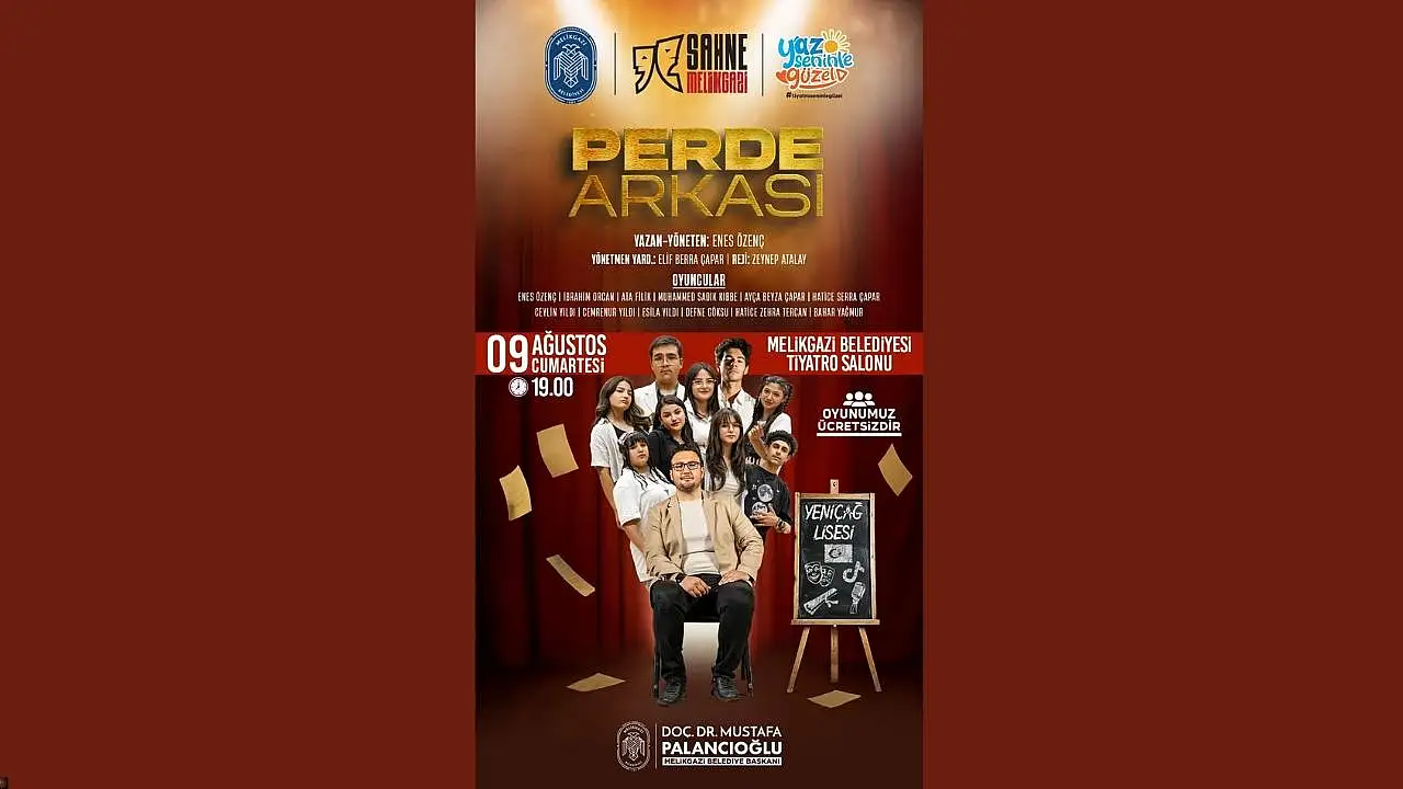 Melikgazi Belediyesi Tiyatro Salonu'nda düzenlenecek olan oyuna tüm tiyatro severleri davet eden Melikgazi Belediye Başkanı Mustafa Palancıoğlu, ‘‘İlçemizde kültür sanat faaliyetlerinin daha fazla vatandaşlarımıza ulaşması ve yaygınlaşması adına etkinliklerimize ve programlarımıza devam ediyoruz. Sahne Melikgazi'miz ile kültürel anlamda ve sosyal açıdan önemli katkılar sağlayacağına inandığımız tiyatrolar ile vatandaşlarımızla bir araya gelmeye, kültürel canlılığı artırmaya devam ediyoruz. Melikgazi Belediyemiz ev sahipliğinde Sahne Melikgazi kapsamında düzenleyeceğimiz tiyatromuza emek ve gönül veren genç oyuncularımızla tiyatro severlerimizi buluşturacağız. Perde Arkası oyunu 9 Ağustos Cumartesi, Melikgazi Belediyesi Tiyatro Salonu'nda saat 19.00'da sahnelenecek. Tiyatroya ilgili duyan tüm hemşehrilerimizi ücretsiz düzenleyeceğimiz oyunumuzu izlemeye davet ediyorum.’‘ dedi.