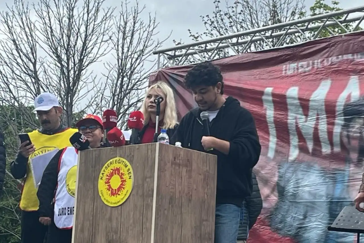 Kayseri'de 1 Mayıs İşçi ve Emekçi Bayramı kutlamaları kapsamında çeşitli sendika üyelerinin katılımıyla program düzenlendi. Mimar Sinan Parkı'ndaki kutlamalarda konuşan genç damga vurdu.