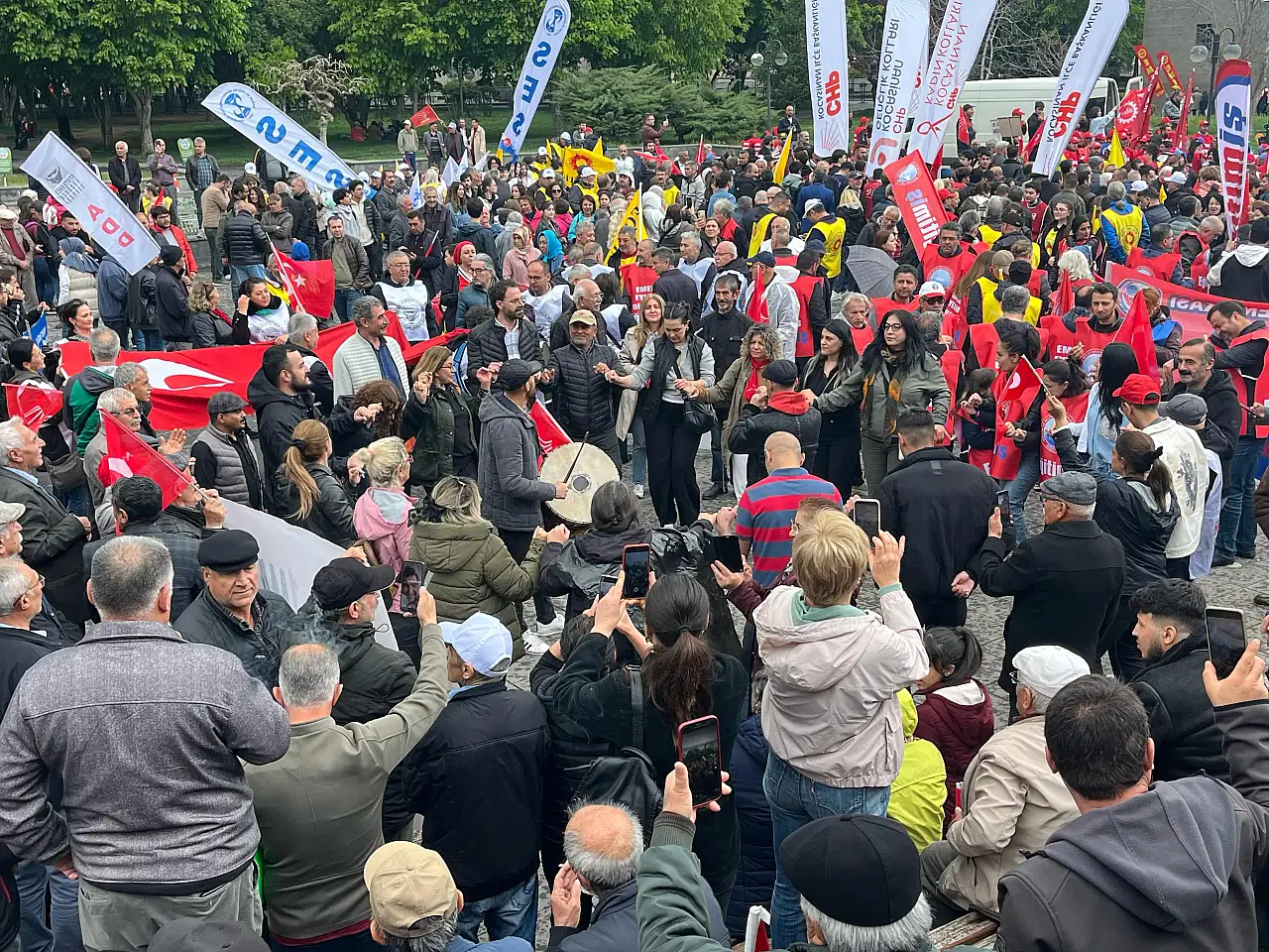DİSK, TÜMTİS, KESK gibi çok sayıda sendika üyesinin de katılımıyla gerçekleşen kutlamalarda işçi haklarının iyileştirilmesine yönelik talepler ifade edildi.