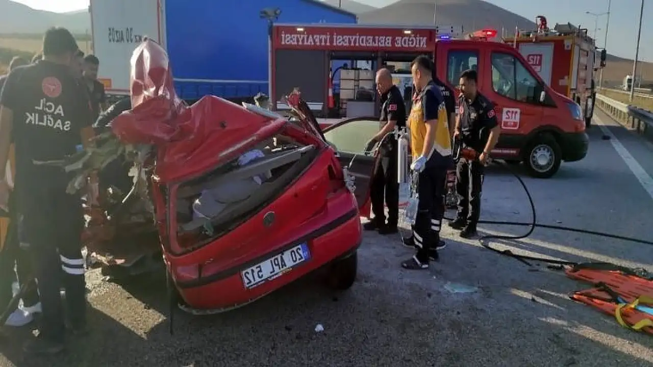 Edinilen bilgiye göre kaza, Niğde-Pozantı Otoyolu’nun Sazlıca mevkisinde meydana geldi. Ankara istikametine seyreden 20 APL 512 plakalı otomobil, emniyet şeridinde duran 51 AR 130 plakalı çekiciye bağlı 51 ACU 176 plakalı yarı römorka arkadan çarptı.