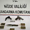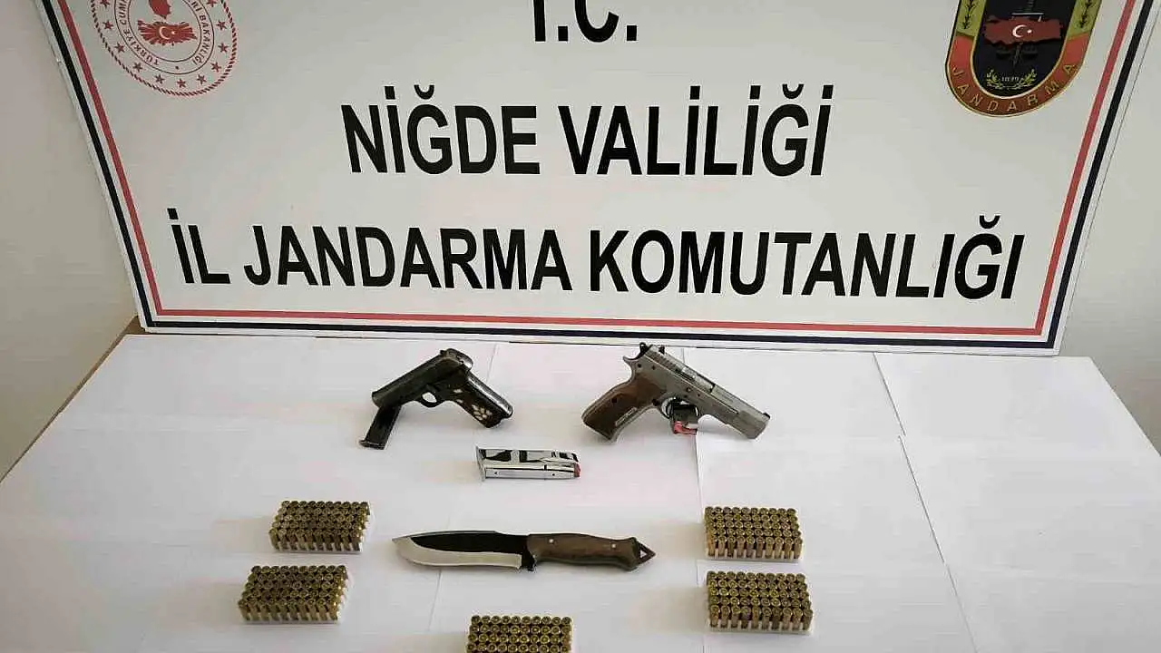 Altunhisar ilçesine bağlı Çömlekçi Köyü’nde jandarma ekipleri tarafından belirlenen bir şüphelinin evinde arama yapıldı. Yapılan arama neticesinde; 9 mm çapında tabanca, 7,65 mm çapında bir tabanca, 259 adet fişek ve bir adet bıçak ele geçirildi.