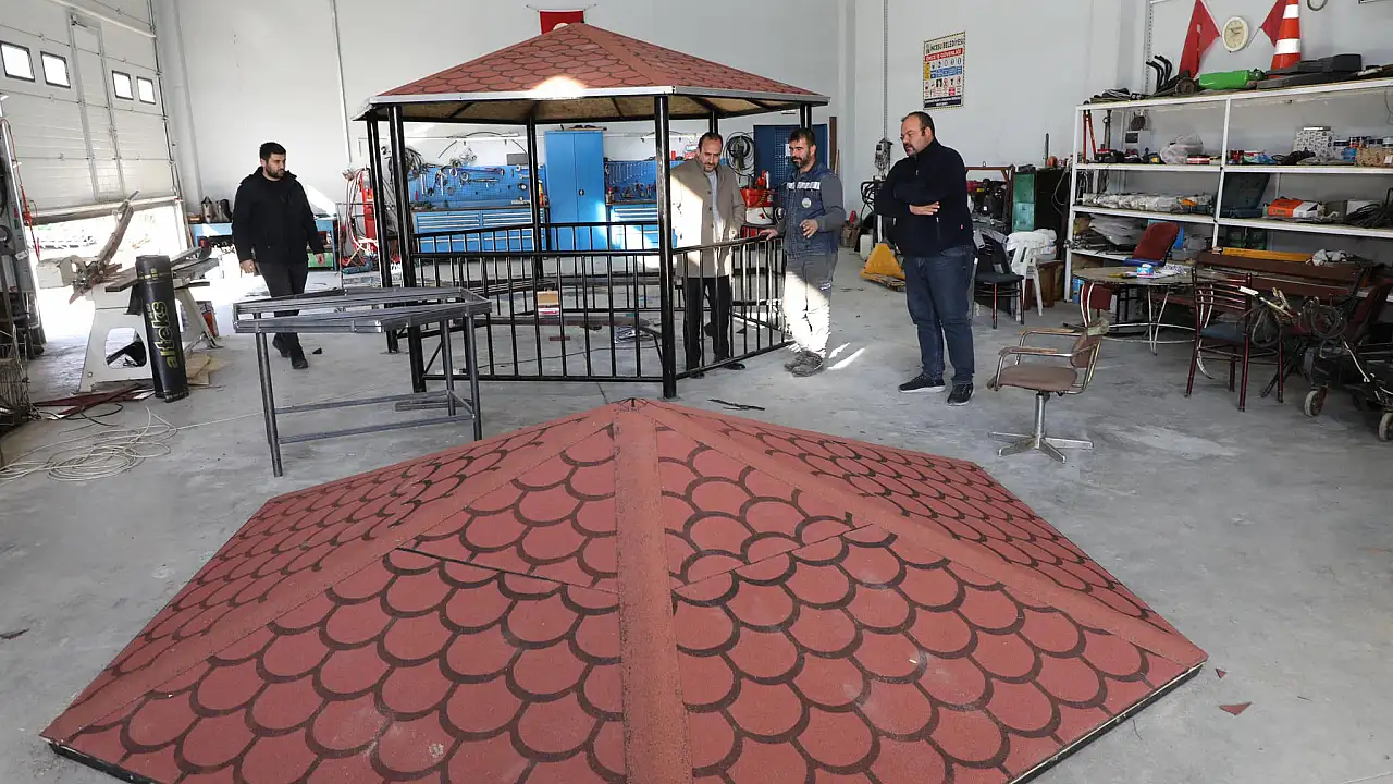 ‘İncesu Belediyesi olarak, eksikliğini hissettiğimiz Kademe binamızda üretim atölyesi kurduk. Burada konusunda uzman çalışanlarımızla mahallelerimizin ihtiyacı olan kamelyaları üretme kararı aldık. İlçemiz gelişiyor, büyüyor, park sayılarımız artıyor. Yeni yapılan parklarda kamelya ihtiyacı doğdu ve piyasa araştırmalarımız sonucunda fiyatların oldukça yüksek olduğunu gördük. Biz de kendi ustalarımızla üretim yapma yoluna gittik. Piyasada 50-75 bin TL arasında değişen kamelyaları yarı fiyatına üretiyoruz. 12-18 bin TL arasında değişen oturma banklarını da maliyetini yarı yarıya düşürerek üretiyoruz.’