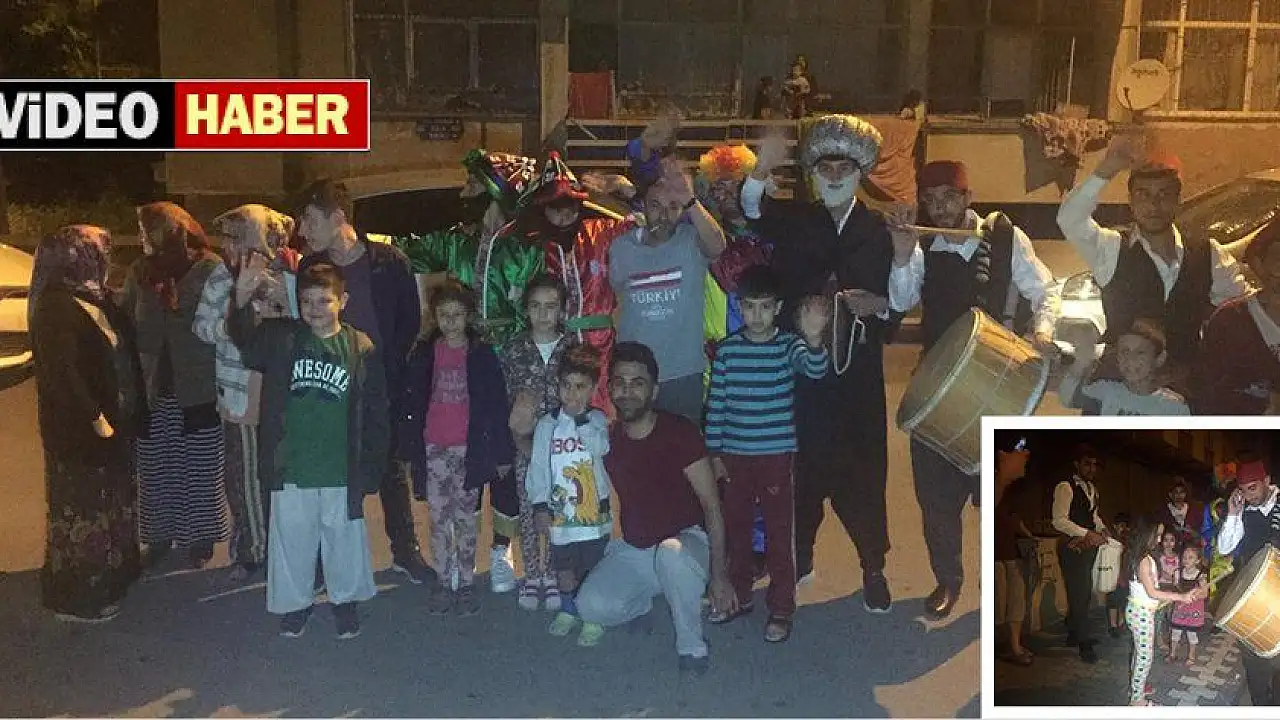Kayseri'de palyaço, Hacivat-Karagöz ve Nasrettin Hoca kıyafeti ile davul çalarak, vatandaşları sahura kaldıran ekibi görenler ellerinde cep telefonlarıyla pencere ve balkona çıkarken, küçük çocuklar aileleri ile birlikte sokakta sahur ekibinin yolunu gözlüyor.