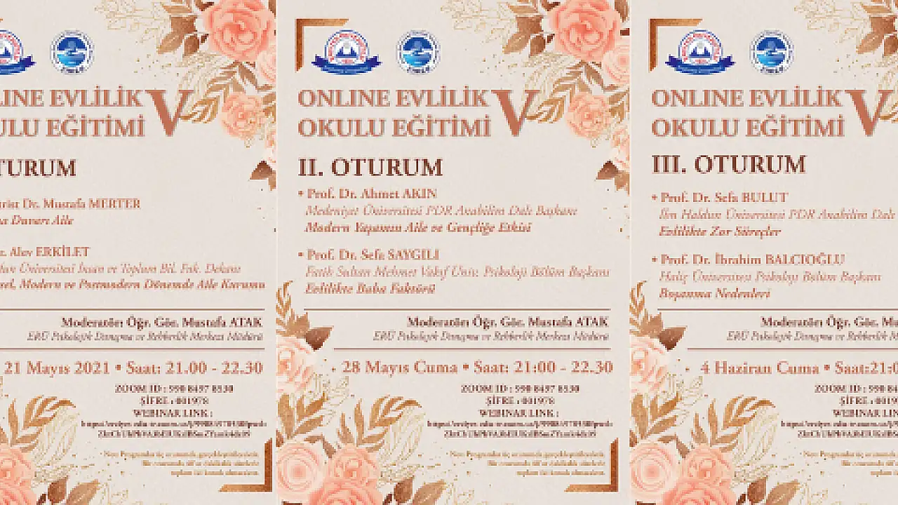 Erciyes Üniversitesi Psikolojik Danışma Merkezi (ERREM) tarafından düzenlenen 'Evlilik Okulu' programları, pandemi şartlarından dolayı çevrimiçi ortama taşınıyor.