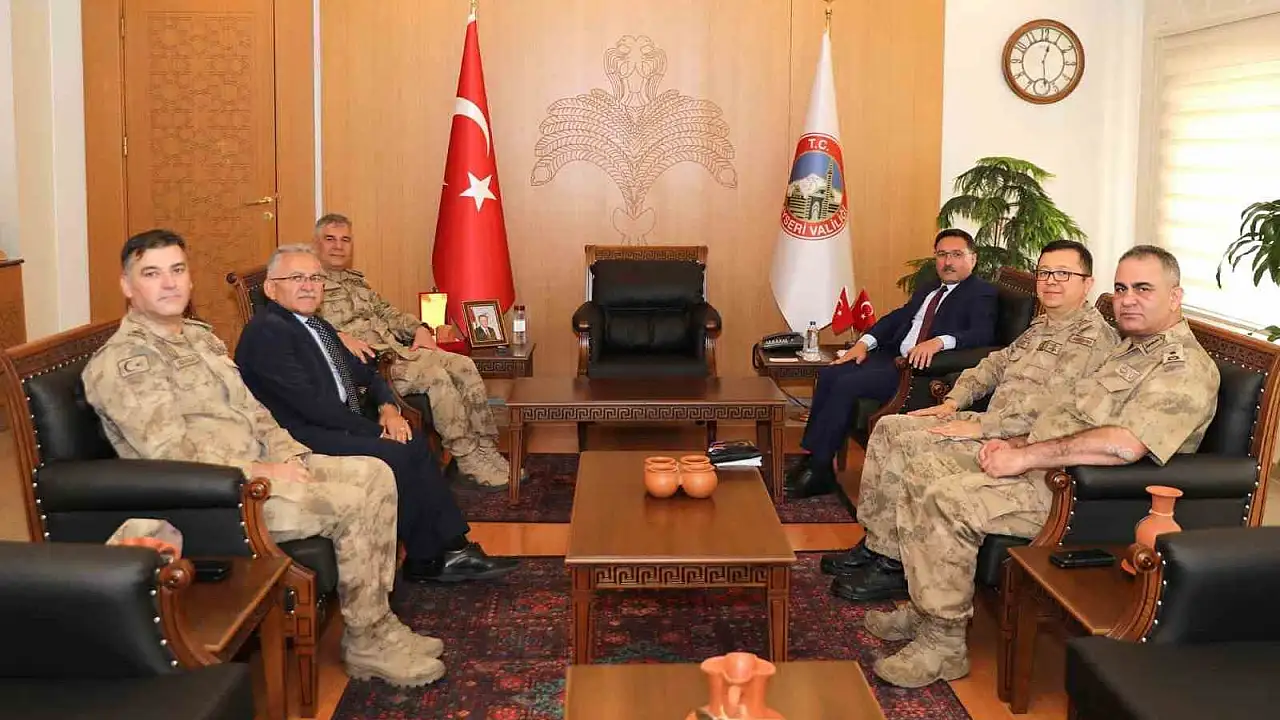 Bir dizi temaslarda bulunmak üzere Kayseri’ye gelen Jandarma Genel Komutan Yardımcısı Orgeneral Ali Çardakcı, İl Jandarma Komutanı Tuğgeneral Yüksel Yiğit ile beraber Kayseri Valisi Gökmen Çiçek’i makamında ziyaret etti. Büyükşehir Belediye Başkanı Memduh Büyükkılıç ile beraber Çardakcı’yı valilik girişinde karşılayan Vali Çiçek, heyet ile bir süre görüştü.