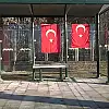 Patlamanın meydana geldiği durağa Türk bayrakları asıldı