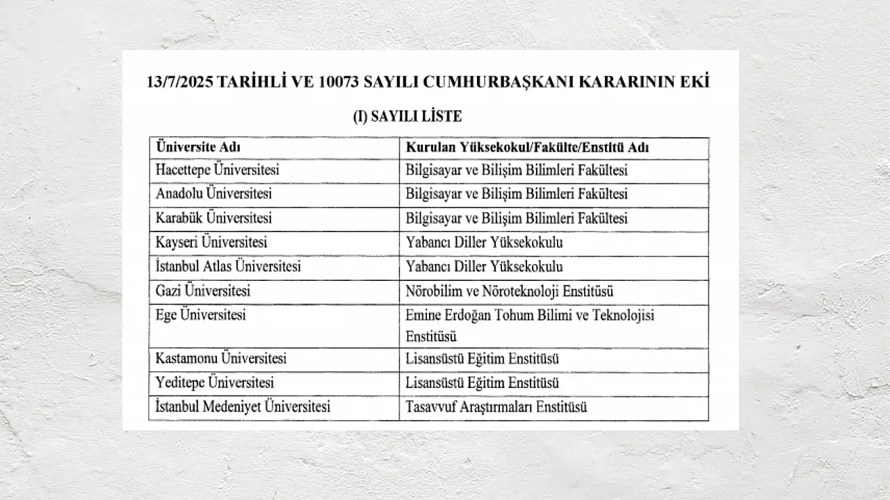 Cumhurbaşkanı Recep Tayyip Erdoğan imzasıyla yayımlanan karara göre çok sayıda üniversitede yeni fakülte ve meslek yüksekokulu kuruldu. Bazı fakülte ve meslek yüksekokulları ise kapatıldı. Kayseri Üniversitesi'ne ilişkinde yeni karar alındı. Detaylar Kayseri Anadolu Haber'de…