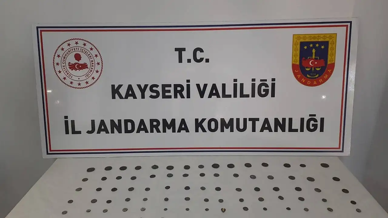 Kayseri İl Jandarma Komutanlığı ekiplerince yapılan çalışmalarda; 83 adet tarihi eser ele geçirilirken olayla ilgili 1 kişi gözaltına alındı.