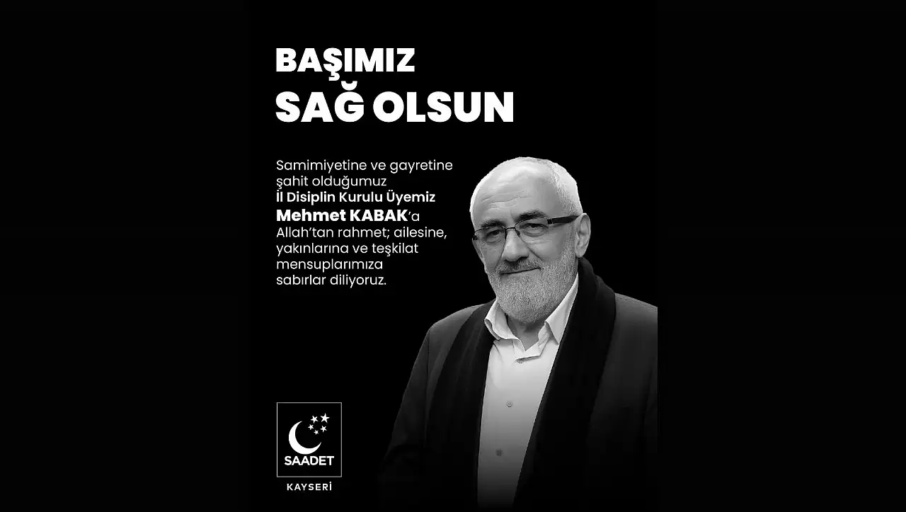 Saadet Partisi Kayseri teşkilatı acı bir kayıp yaşadı. İl Yönetim Disiplin Kurulu Üyesi Mehmet Kabak hayatını kaybetti. Detaylar Kayseri Anadolu Haber'de...