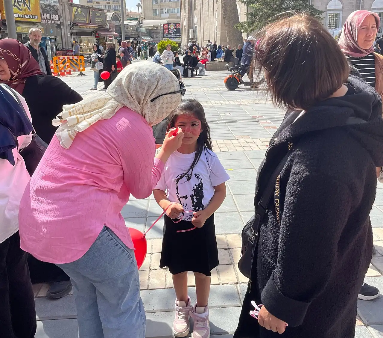 Cumhuriyet Meydanı'nda stant açan Saadet Partisi Kadın Kolları, savaşsız ve adil bir dünya için çocukların sesi oldu: ''Her çocuk bayramı hak eder.'' Ayrıntılar Kayseri Anadolu Haber'de…