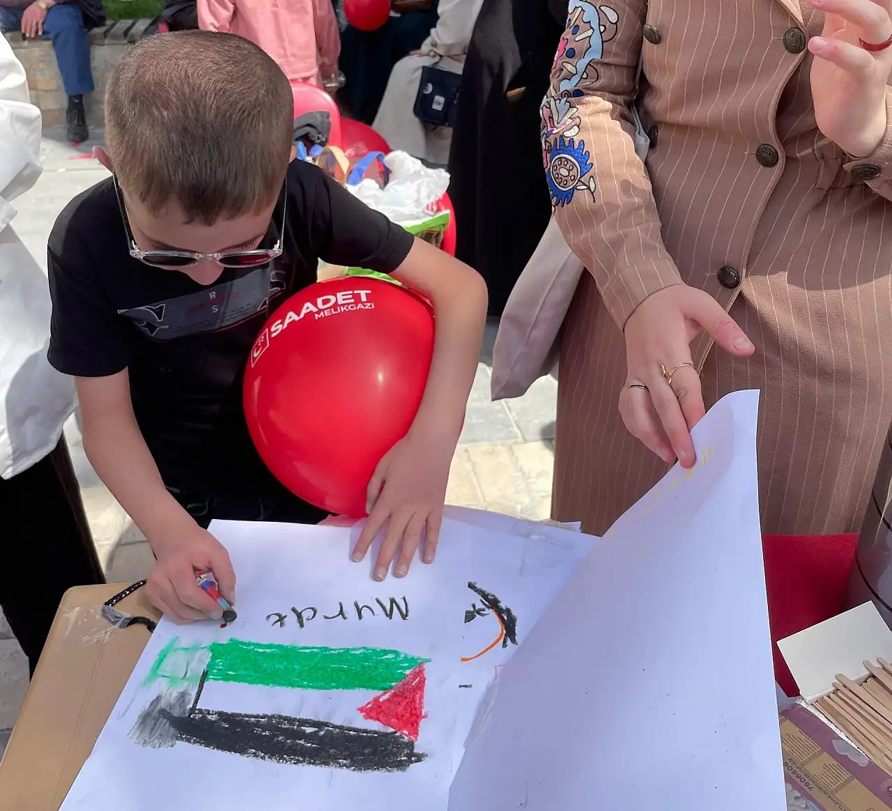 Etkinlik boyunca çocuklara yönelik çeşitli etkinlikler de düzenlenirken, ‘‘Bir çocuğun gülüşü, bir medeniyetin kalp atışıdır’‘ sözleri dikkat çeken pankartlar arasında yer aldı. Şehadet Özçelik konuşmasının sonunda, ‘‘Gazze’nin enkazlarında bayram arayan çocuklara ses olmak için buradayız’‘ dedi.