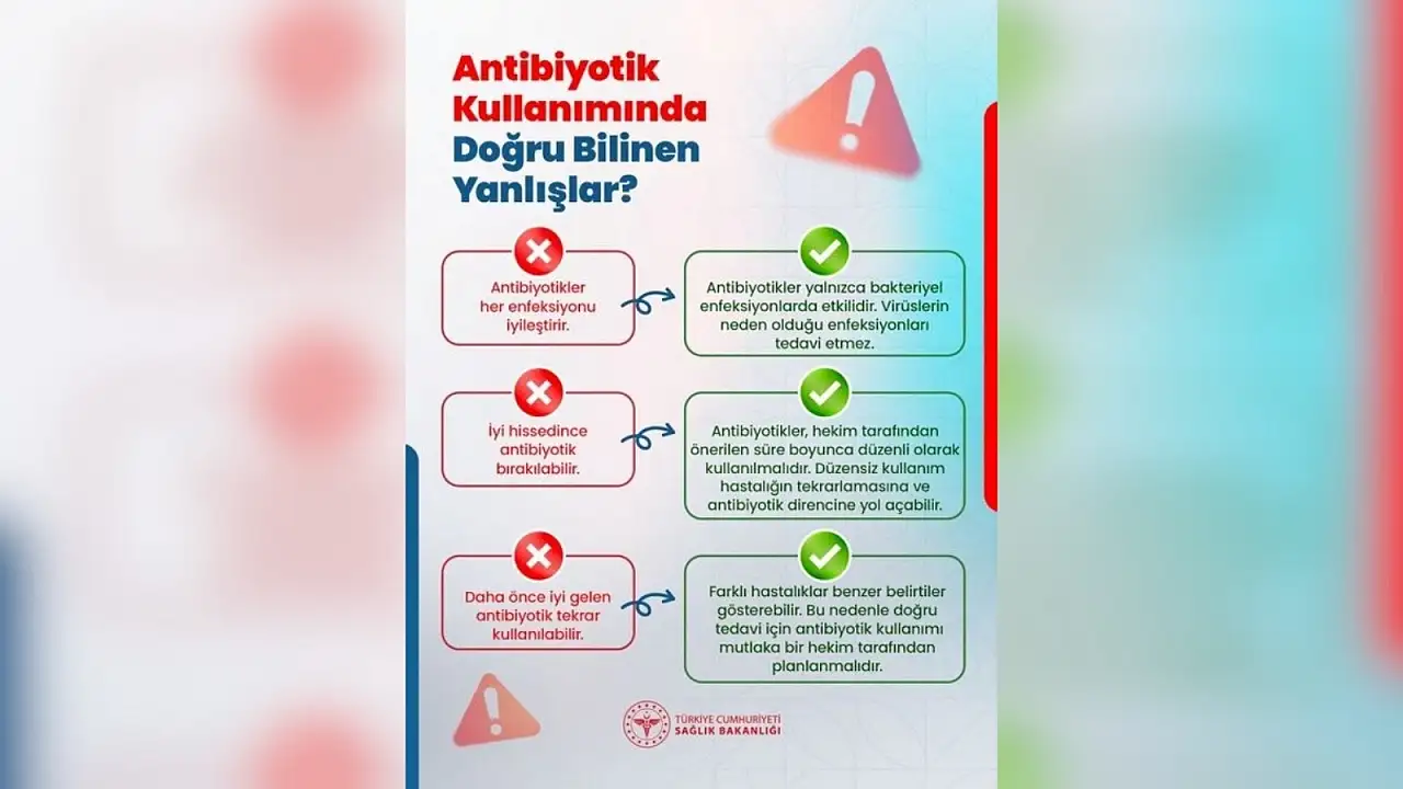 Bakanlık, özellikle soğuk algınlığı ve grip gibi sık görülen hastalıklarda antibiyotik kullanımının hâlâ yaygın olmasının altını çizerek önemli bir hatırlatmada bulundu. Antibiyotiklerin yalnızca bakteriyel enfeksiyonlara karşı etkili olduğu, virüslerin neden olduğu hastalıklarda ise fayda sağlamadığı vurgulandı.