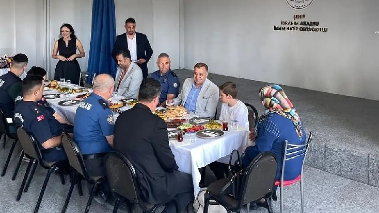 Tomarza’da Şehit İbrahim Akarsu’nun ailesi isminin verildiği İmam Hatip Ortaokulu’nda ağırlandı.