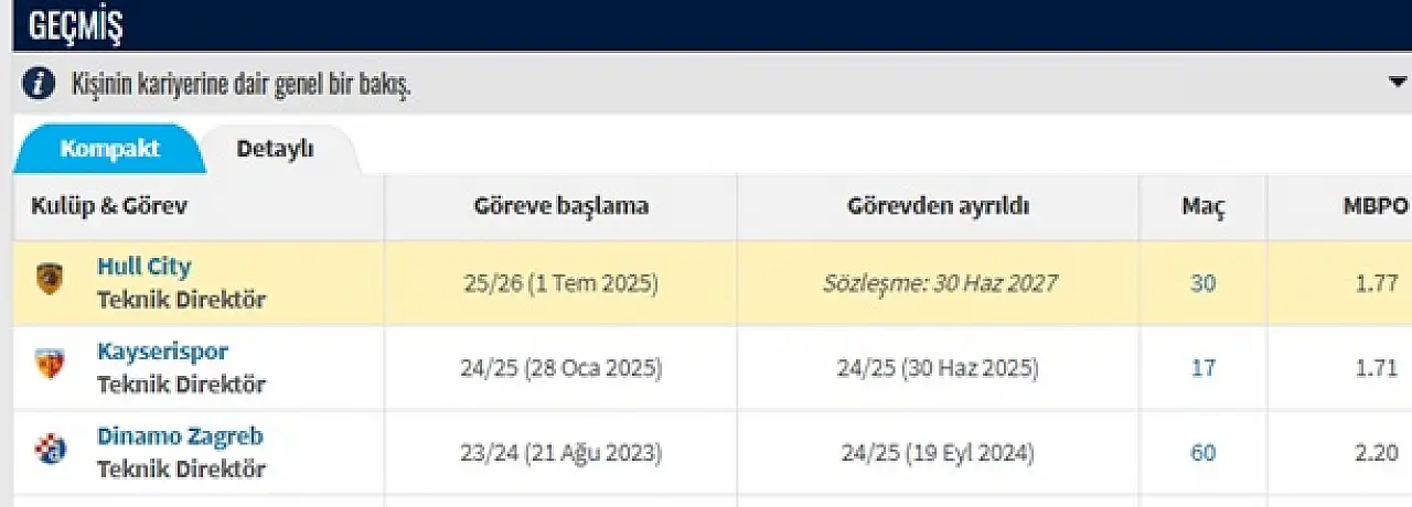 İngiltere Championship'te mücadele eden Hull City, Sergej Jakirovic önderliğinde Premier Lig'e doğru adım adım ilerliyor. Ligde 50 puanla dördüncü sırada yer alan ekip, üst üste son 3 maçını kazanırken, son 9 maçta ise 7 galibiyet, 1 beraberlik, 1 yenilgi elde etti. Jakirovic, Hull City performansıyla Kayserispor'daki puan ortalamasını geride bıraktı.
