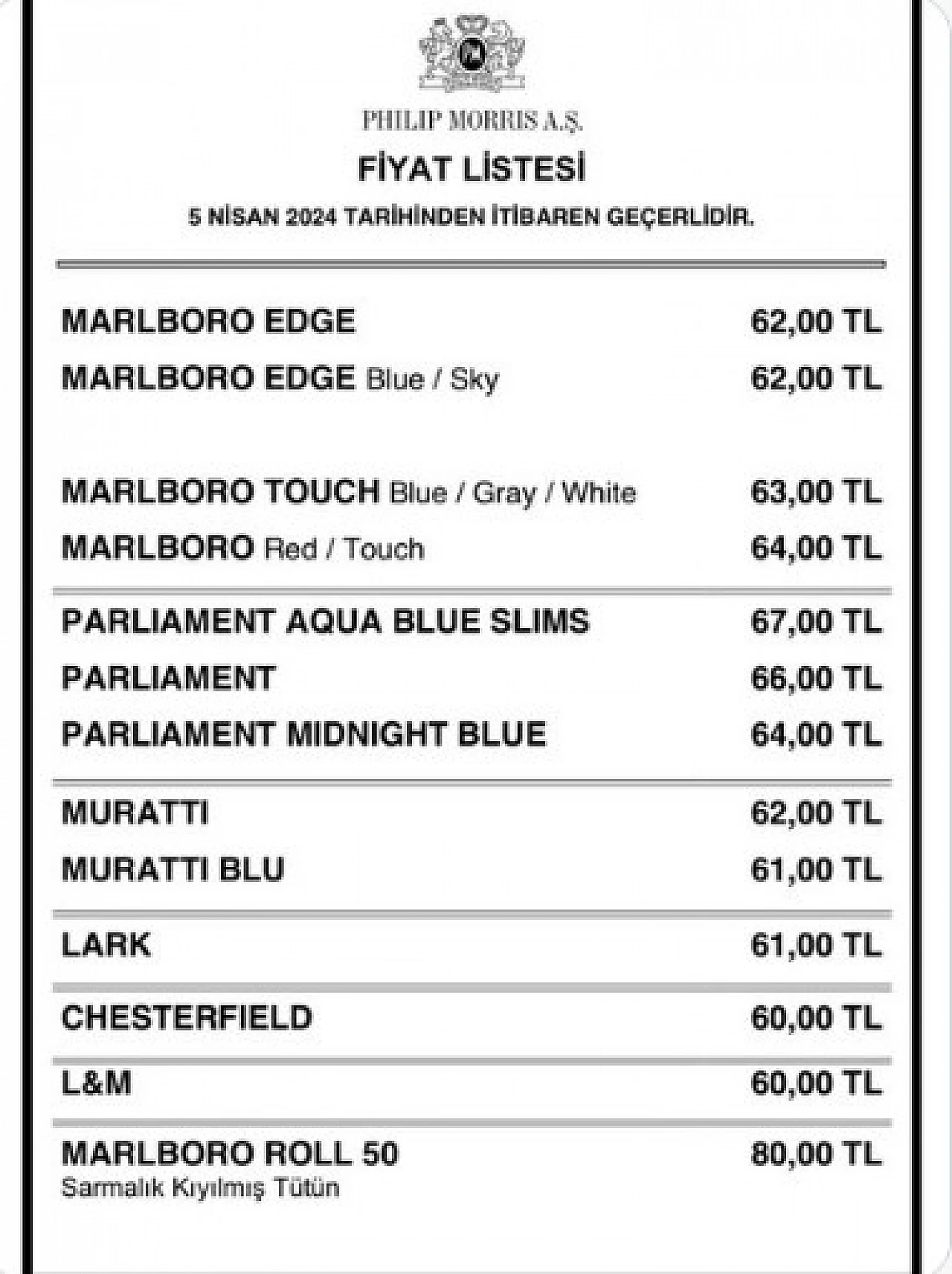 5 Nisan tarihinde de Philip Morris grubuna zam haberi geldi. Yapılan zam oranına göre en pahalı sigara 67 TL iken en ucuz sigara 60 TL oldu. Philip Morris sigara grubuna 5 TL’nin üzerinde zam yapıldı.