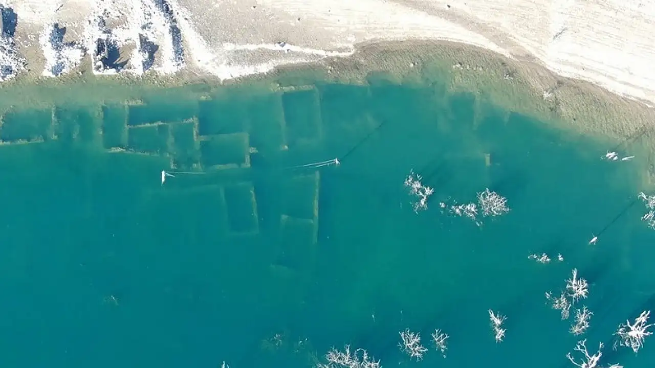 Sivas’ta kuraklık nedeniyle Pusat Barajı’nın suyu çekildi. Suyun azalmasıyla ortaya çıkan eski Pusat köyü, yıllar sonra kar altında kaldı.