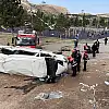 Sivas'ta minibüs istinat duvarından aşağı devrildi!